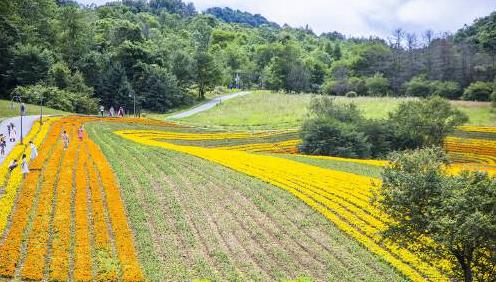 各色花卉织就了一片壮观的花海,色彩斑斓,为景区增添了无尽的生机与活力。